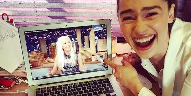 Clarke Instagrammed a photo of herself cracking up while watching Wiig portray the Targaryen girl.