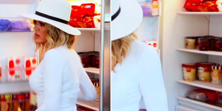 Around the 30-second mark, you'll notice Khloé slowly open her fridge. Do not be fooled, children. THAT'S ACTUALLY JUST A GIANT FREEZER.