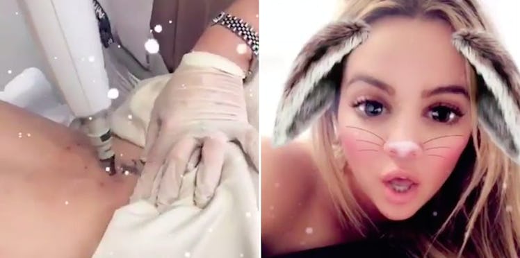 In a series of videos on Instagram and Snapchat over the past year and a half, Khloé showed fans the process of removing the “Daddy” tattoo above her butt.