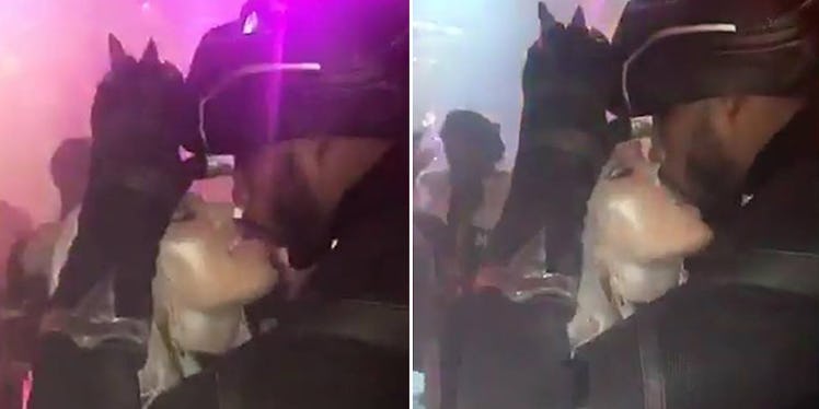 IT DIDN'T STOP THERE, THOUGH. Then, Khloé stuck out her tongue and started licking his face. And by face, I mean mouth. LOOK AT HOW MUCH TONGUE THERE IS. THIS IS GRAPHIC AF.