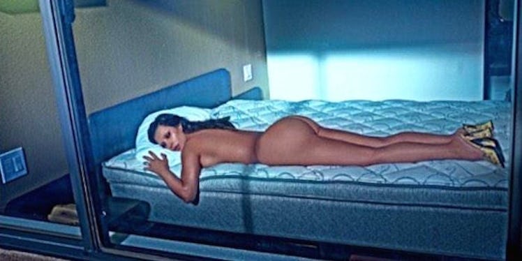 Locked inside a bedroom at motel 6 blasting Madonna Erotica on repeat &rolling around in a Prada bodysuit at 2am pic.twitter.com/n1o78sZ0RJ — Kim Kardashian West (@KimKardashian) February 6, 2015