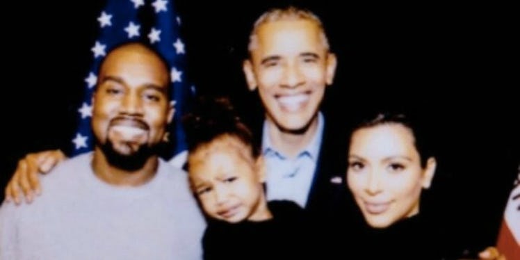In this photo, Kim and Kanye's daughter, North West, seems to take a real liking to the 44th president of the United States.
