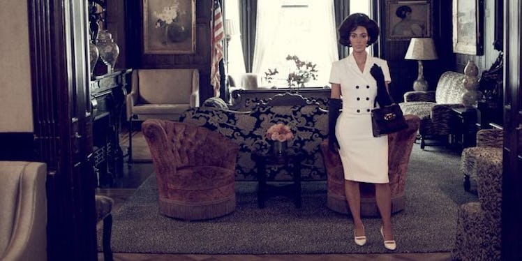 The superstar posed for the September issue of Interview magazine, and it's very... surprising. In the photo, shot by photographer Steven Klein, the 36-year-old is posing with her daughter, North West, and emulating Jackie Kennedy. Yes, you read that right. Kim K is transformed into the former first lady. Nobody understands the similarities, but it happened, and we're rolling with it.