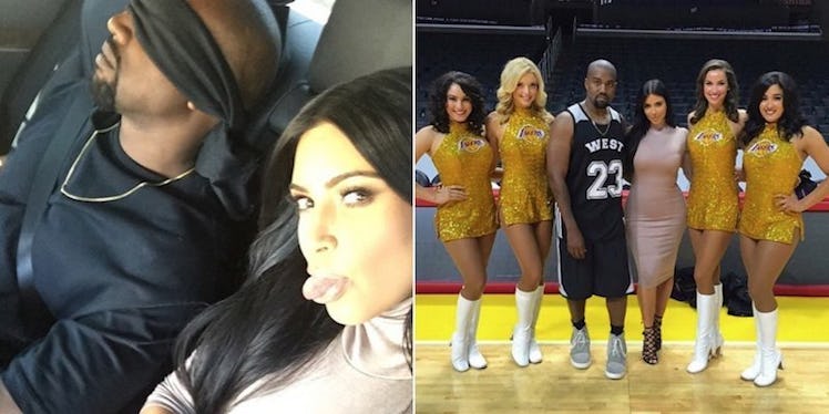 Kim and Kanye hung out with the Laker Girls.