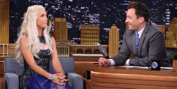Kristen Wiig went on "The Tonight Show with Jimmy Fallon" to promote her new film, "Welcome to Me," and for some unknown reason, she was dressed as Daenerys Targaryen from "Game of Thrones."