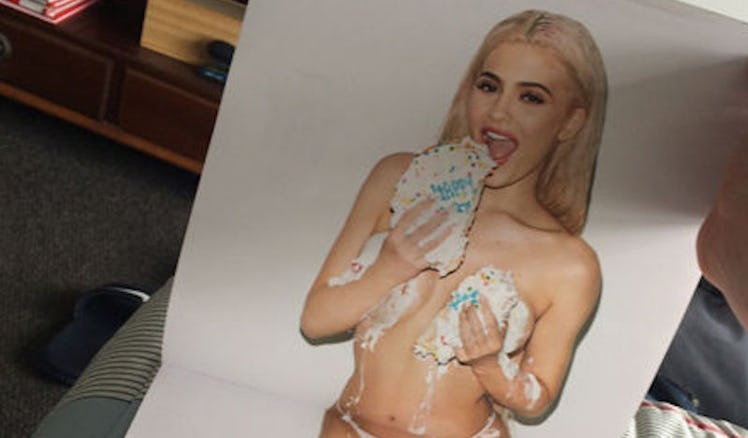 Oh, we also haven't talked about the most important part of this calendar. For her birthday month, Kylie posed topless and covered her bare boobs with cake.