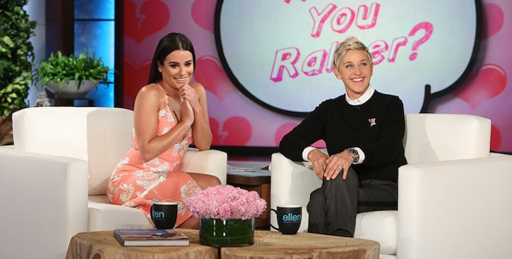 While there, Ellen decided to help Lea Michele pick out a new boyfriend as Lea is currently a miserable single wreck. (JK, she's doing fine, everybody. LEA MICHELLE DON'T NEED NO MAN!)