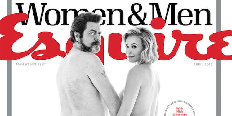 The comedienne stripped down with pal Nick Offerman for Esquire's April 2015 issue, which, according to the magazine's website, is “devoted entirely to how men and women interact.”