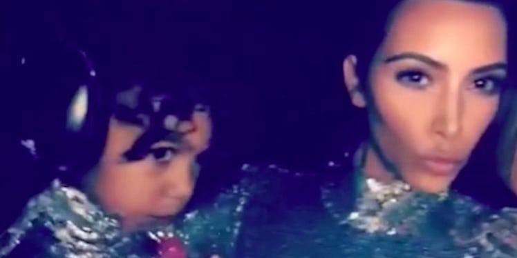Kim K dressed herself and her daughter in identical silver sequin dresses and, of course, the whole thing was documented on Snapchat.