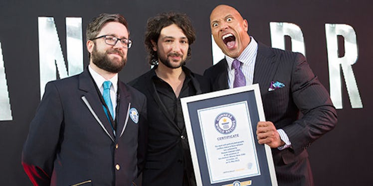 The Rock set the world record for most selfies taken in three minutes. While on the red carpet for the London premiere of his film "San Andreas," The Rock took 105 selfies with fans in the span of 180 seconds.