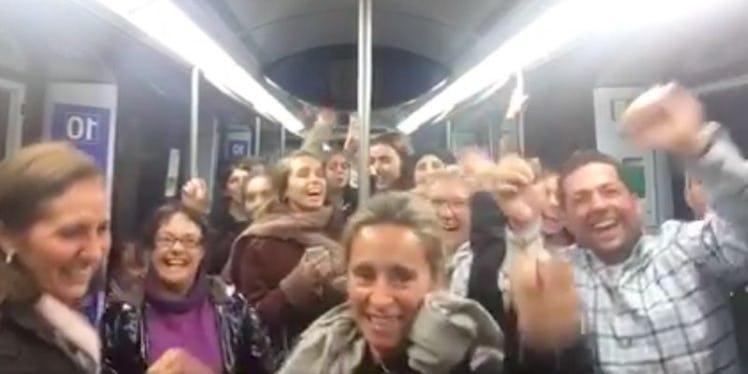 According to E! News, the train these music-loving passengers were aboard was in Madrid, and the dancing began when an artist on board started to sing the track.