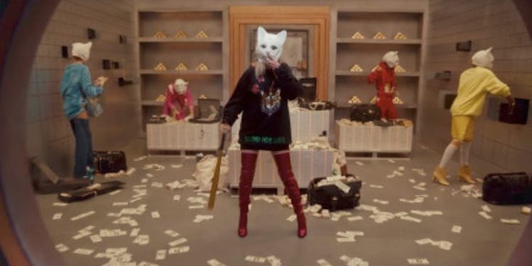 The music video portrays Swift and a gang of bandit-kitties robbing the giant safe of "Stream Co.," the not-so-subtle way to throw shade at the streaming services Swift went head-to-head with. The Verge reported in 2014 Swift penned an essay for The Wall Street Journal where she declared "valuable things should be paid for" in response to free streaming services.