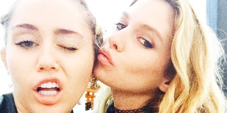 "She's not him, no matter what you say, no matter what you do, I just can't fall in love with you," Miley croons in the soulful "She's Not Him," the tenth track on Younger Now. It appears to be a heartbreaking declaration of a person torn between two relationships, not able to get over one love while trying to make it work with another. Miley's rumored fling with Victoria's Secret angel Stella Maxwell comes to mind if this does happen to be an autobiographical admission of her past feelings. Rumblings of their relationship swirled when they were spotted making out back in 2015. In the summer of that same year, Miley and Stella made their relationship what some might look at as "Instagram official" when they posted a slew of photos of them together over the course of a few months. To be clear, they never explicitly confirmed anything romantic, but of course, Miley's intimate new melodies are putting a retroactive spotlight on their relationship, whatever it was.