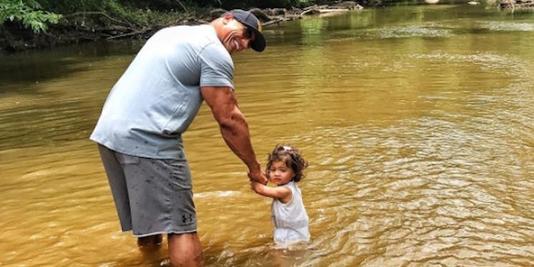 While I stuffed my face with cheeseburgers and sour cream and onion chips this past Memorial Day, The Rock was adventuring through a river with his daughter because normal people typically spend time in nature on the weekends.
