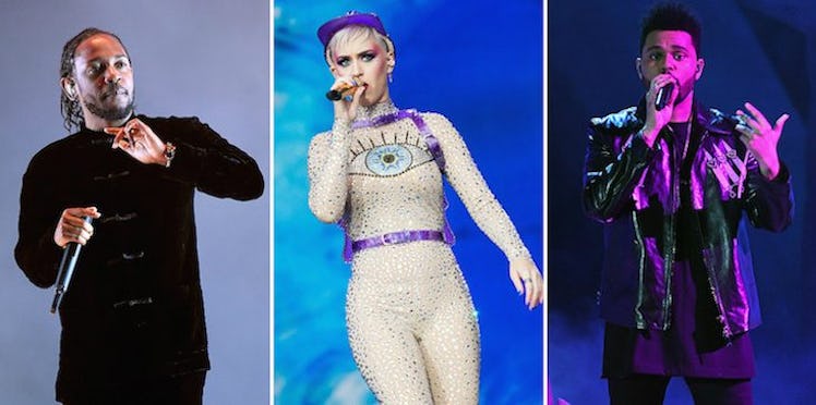Bruno Mars (Atlantic Records) Kendrick Lamar (TDE/Aftermath/Interscope) Ed Sheeran (Atlantic Records) Ariana Grande (Republic Records) The Weeknd (XO/Republic Records) Lorde (Republic Records)