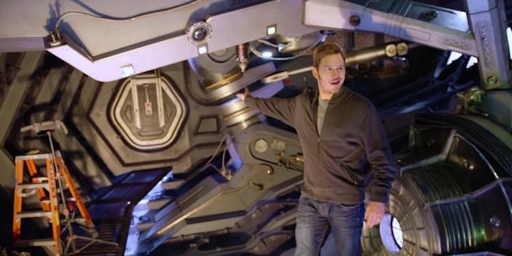 Pratt also takes viewers inside the partially-built Milano, his character Peter Quill's customized M-ship.