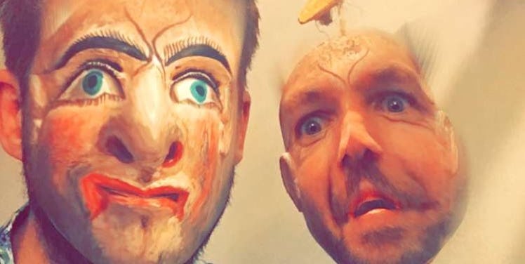 As you can imagine, I'm very confused. It looks like he's trying to love himself. He's seemingly having a grand ol' time with friends, which you can clearly see with this beautifully artistic face-swap: