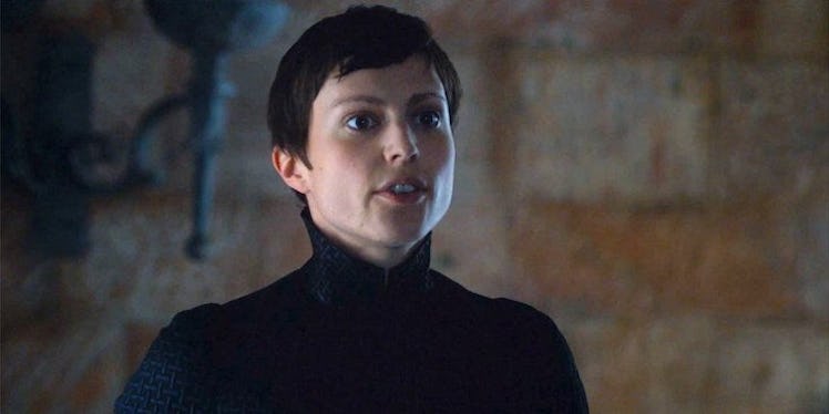 So why don't you recognize her if she's been in so many scenes already? Well, back then she actually had longer hair, similar to Cersei's old 'do. And apparently, being Cersei's fave servant also means changing your hair to always match hers, because now that Cersei is rocking a pixie cut, Bernadette also debuted a short haircut in the new episode.