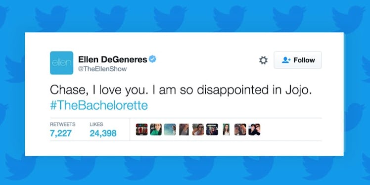 Let's start with Ellen DeGeneres. The talk show host seems to be stuck on Chase and a bit disappointed that JoJo let him go.