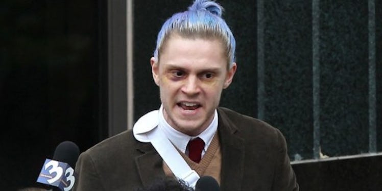 In the past several months we've gotten a lot of terrifying details about the upcoming season of American Horror Story. From the clips, pictures, and trailers we've seen, this looks like it could be one of the scariest, most sinister installments of the series to date. So far, we know this season will open on the evening of the 2016 presidential election, and we've learned the theme of the season will deal with cults; but, of course, there are still plenty of questions that we won't get answers to until the season airs. Lucky for us, though, Ryan Murphy recently answered one major question we've had about the upcoming chapter: Who does Evan Peters play on American Horror Story: Cult?
