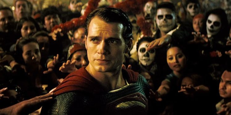 If you actually think about it, it makes sense. In the first act of Batman vs. Superman, Superman leaves Lex Luther's party on a mission to rescue a girl trapped in a burning factory building. After saving her, he is surrounded by a crowd of people dressed as skeletons and wearing skull face paint as they reach out and try to touch him.