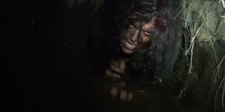 The scariest part of the trailer features someone stuck inside a muddy, claustrophobic tunnel. They're basically all of us trying to fit into out jeans after Thanksgiving.