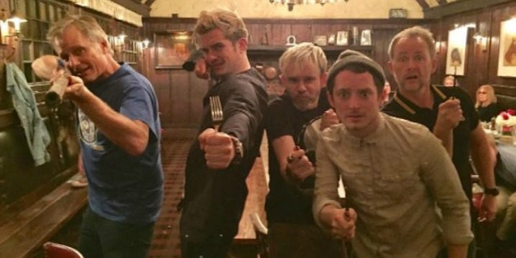 Monday night, actors Orlando Bloom, Elijah Wood, Viggo Mortensen, Billy Boyd and Dominic Monaghan had an impromptu "LOTR" reunion at a restaurant, and the pictures are beyond epic.