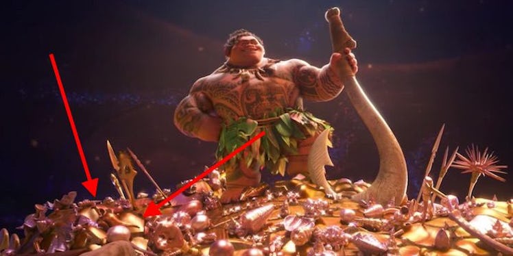 The biggest "Aladdin" shoutout is hidden in the scene where Maui retrieves his magical fish hook from Tamatoa.