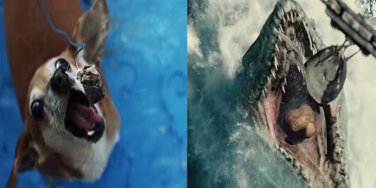 YouTube channel Sausage Party uploaded a side-by-side comparison of "Jurassic World" vs. "Jurassic Pork," and I have to say, nothing says drama quite like hot dogs with faces on them attacking dino-shaped chicken nuggets.