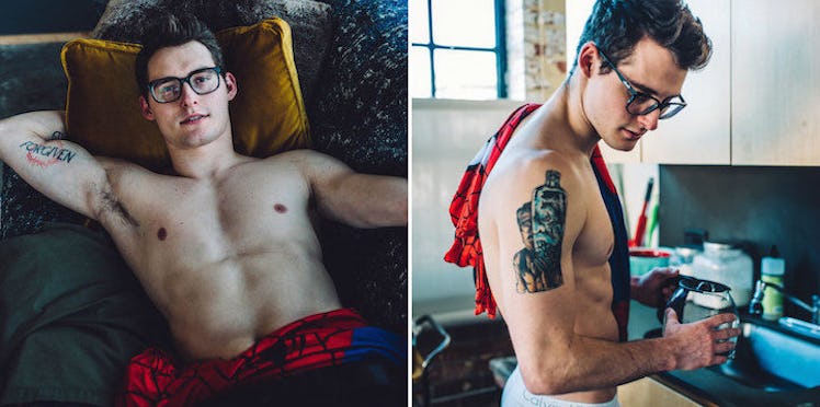 Here's Peter casually stripping out of his jeans because it's been a long AF day dealing with those pesky villains and all.