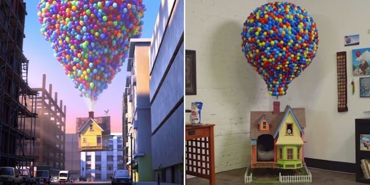 Thousands of fiberglass balloons and homemade shingles later, Dug's new pad is complete. There's even a tiny Carl Fredricksen peering out the window.