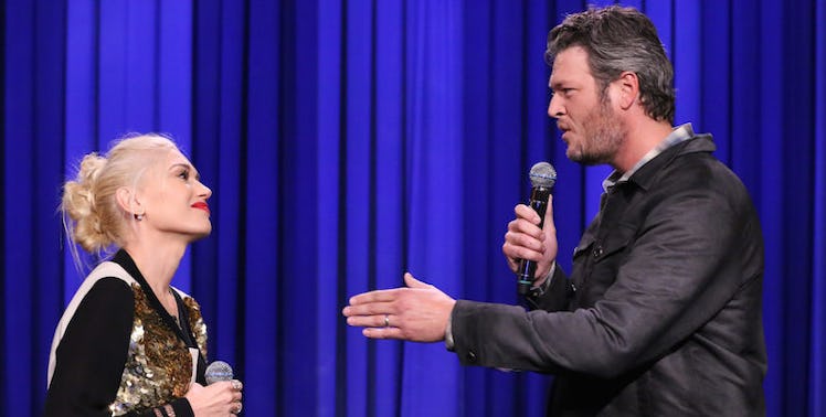 9. Just a few weeks ago, all the coaches of "The Voice" appeared on "The Tonight Show." They each could pick anyone to sing whatever song they wanted, but obviously Gwen picked Blake.