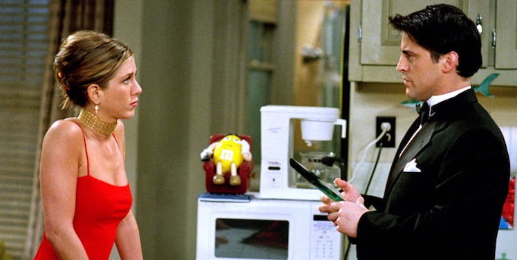 In the episode, Rachel (played by Jennifer Aniston) and Joey (Matt LeBlanc) discuss Joey's acting audition while chatting with Monica (Courteney Cox) in her kitchen.