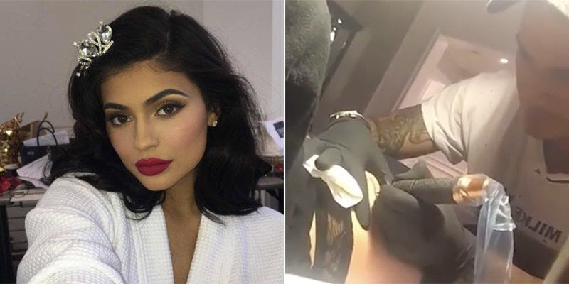 For those whose eyes haven't picked it up, that would be an ass tat. And because it's an ass tat, you get the trifecta of subjects that will always make Kylie Jenner fans start guessing: Kylie, Kylie's ass and a new tattoo.