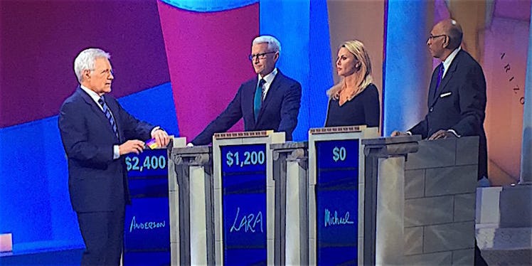 It happened after the first commercial break, which "Jeopardy" reserves for light-hearted banter between Trebek and the contestants. Trebek asks each contestant a question and they respond with a story -- usually things along the lines of "I always go to the zoo on my birthday," or "My wife and I once had a comical misunderstanding" or "I plan to throw a party with my winnings." Anderson Cooper, for instance, got asked about being a childhood model.