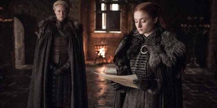 Will Sansa fall for it? We're thinking not, because the next time we see her with Brienne, she's not asking her right-hand woman for information on Arya. Instead, she's sending her away, to represent her in the Dragon Pit "meeting of the minds" in King's Landing, and booking no arguments about it.