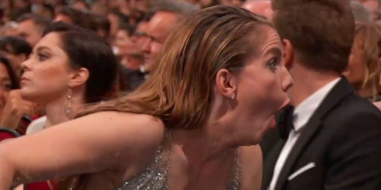 Because we as a people have become so adept at turning anything into a meme, it's important to constantly be on the lookout during awards shows for the most opportune meme-worthy moments. Whether the guests of honor are reacting to something in their seats, lookin' all crazy during an acceptance speech, or just simply clapping in a way that the internet deems unacceptable, it's our job to mine out the best moments to spark viral memes. Given this year's insanely unexpected moments (*cough* Sean Spicer showing up *cough*), that's not a difficult job. With that being said, this year's Emmys delivered everything we could have asked for and more.