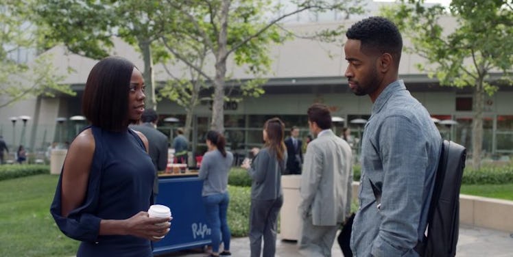 In the next scene, Lawrence saw Molly at a coffee stand in a park outside of his office building. He hesitated to drop by and speak to her, but he's likely known Molly for the same five years he's known Issa, since they're besties, so he went to say hi.