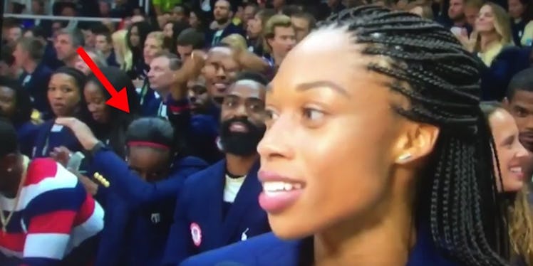 American sprinter English Gardner video-bombed fellow teammate Allyson Felix while performing the popular dance move.