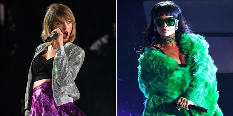 Citations: Rihanna on Why She Won't Join Taylor Swift on Stage: "She's a Role Model" (Cosmopolitan), Rihanna on Taylor Swift: 'She's a role model, I'm completely not' (NME)