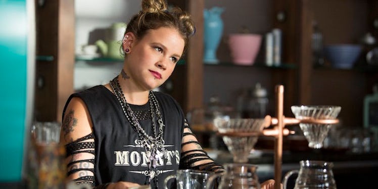 In order to play Clay Jensen's estranged friend Skye Miller, Sosie Bacon had to go through a radical transformation to look like she was just spit out of a Hot Topic. In real life, Sosie doesn't have any of the tattoos, piercings, or the dramatic goth wardrobe Skye does.