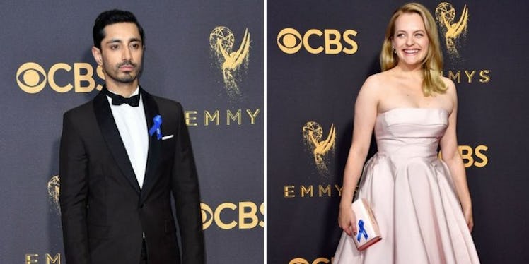 The ribbons are actually proved by the American Civil Liberties Union, commonly shortened to the ACLU. Celebrities like Riz Ahmed, Elisabeth Moss, and more tacked the small blue ribbon onto their Emmys night outfits to show their support for the nonprofit law union, which works to protects individual rights and liberties protected by the Constitution. In the past year, the ACLU has become an even more powerful union in response to the presidency of Donald Trump. Earlier this year the ACLU sued Trump over his attempt to restrict immigrants from entering America due to an extreme vetting process and won the case. The celebrities wearing ACLU ribbons on Emmys night are also making a political statement that they support the ACLU's efforts to protect Constitutional liberties by standing up to many of the Trump administration's more restrictive measures.