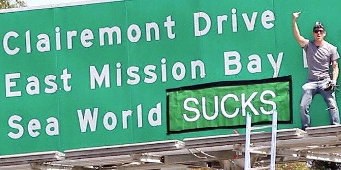 In fact, just a year ago, Steve-O altered a San Diego off-ramp sign to read “SeaWorld Sucks.”