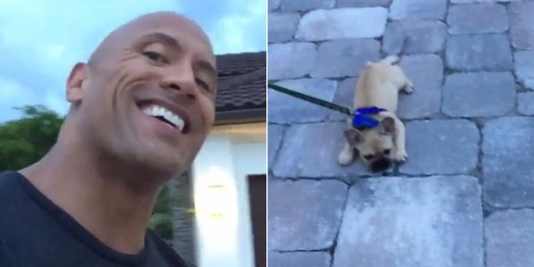 The Rock shared this amazing video on his Instagram, and it's really humanizing to see not even he can get a puppy to walk.