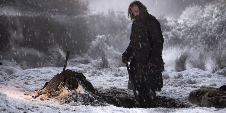 I like this theory because a resurrected Hound is actually a thing book readers believe they see when Brienne passes through the Quiet Isle. The Elder Brother tells her The Hound died in his arms, but the hooded gravedigger seems to be suspiciously Hound-esque, causing fans to wonder if two Undead Cleganes roam Westeros, destined to fight one day.