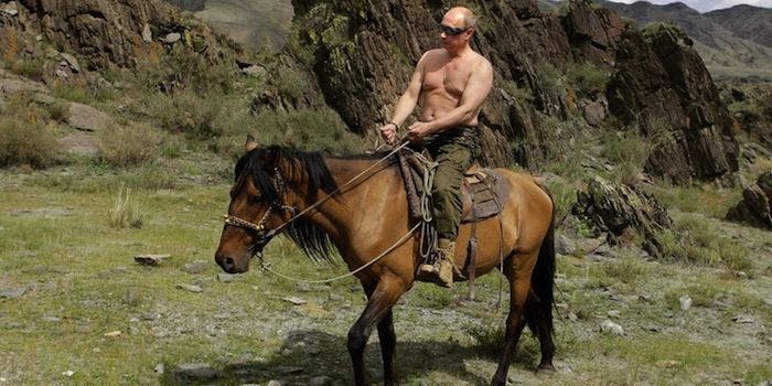 This Russian leader means business, showing off how insanely epic he is by posing with a polar bear or riding a Harley with the Hell's Angels.