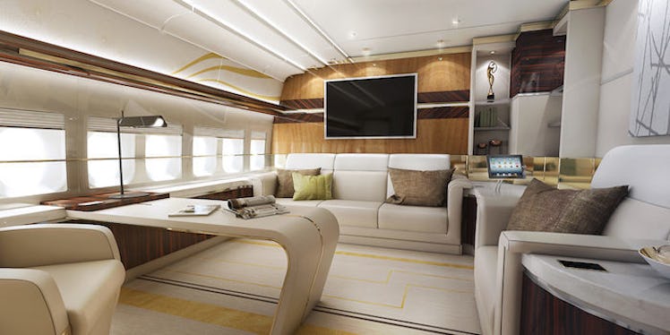 In addition to some serious leg room, the inside of this badass airplane also boasts a bunch of opulent features that any reasonable jet-setting billionaire would require while cruising through the clouds.