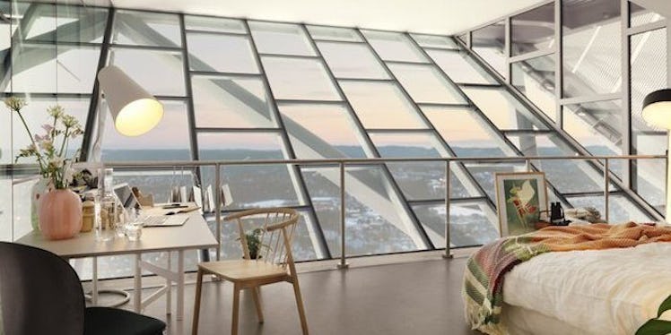 It is a glass penthouse sitting atop the world-famous Holmenkollen ski jump.