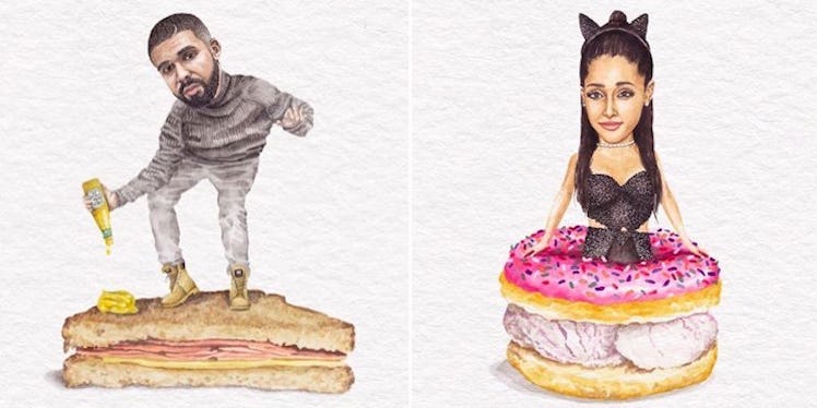 For his latest project, this LA-based art director set out to create a comical series of watercolor portraits pairing your favorite stars with sandwiches. That's right. Thanks to this talented artist, "Celebs On Sandwiches" is a real thing, and it's absolutely hysterical.