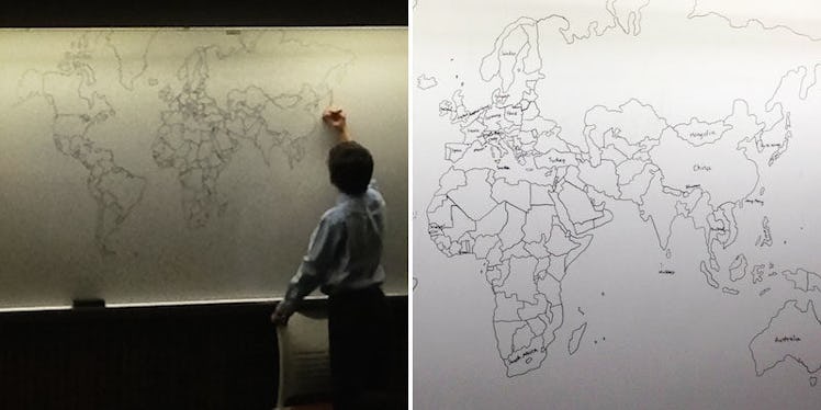 The 11-year-old son of a college professor was invited by his mom to come into her class. That's when he drew this world map.
